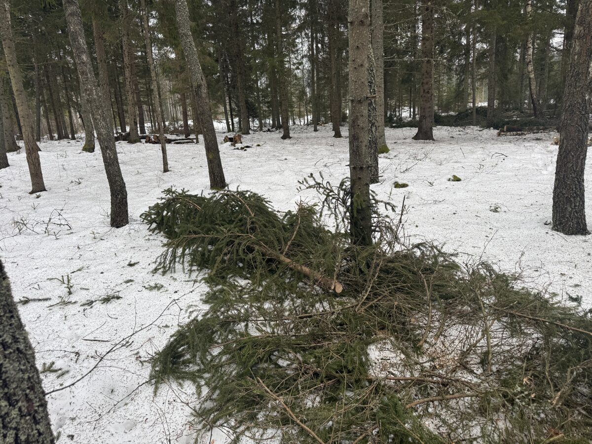 Egļu galotnes ir vērtīgs pakojamais materiāls un tās ir jasaliek ceļos.