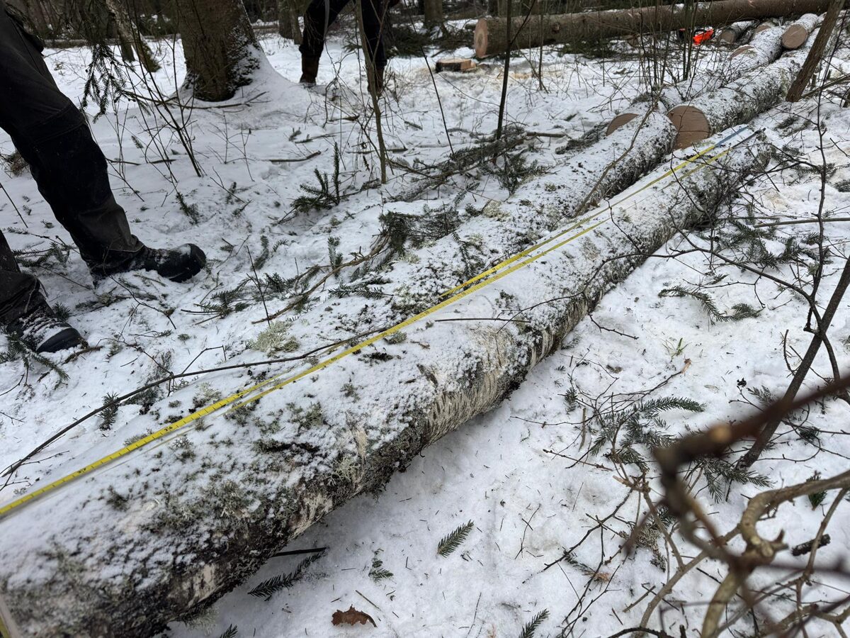 Vienpusējo līkumainību mēra ar mērlentu novelkot starp galiem un izmērot starpu starp lentu un baļķi..